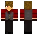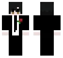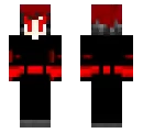 Black jacket.... Black jacket. Red eyes . Black hair with red tips. black pants.