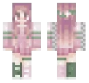 a girl with pi... a girl with pink hair and pink and green dress with flowers and veins and leaves